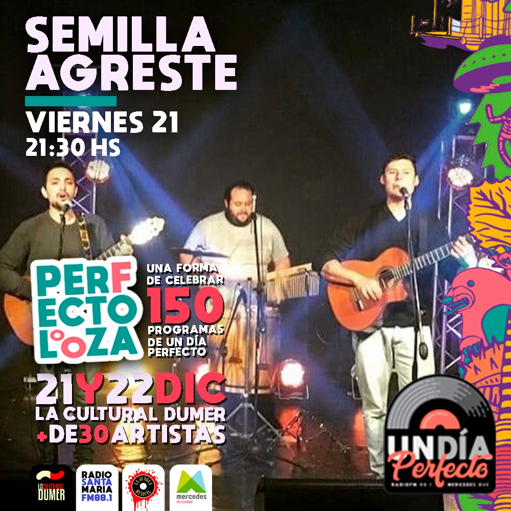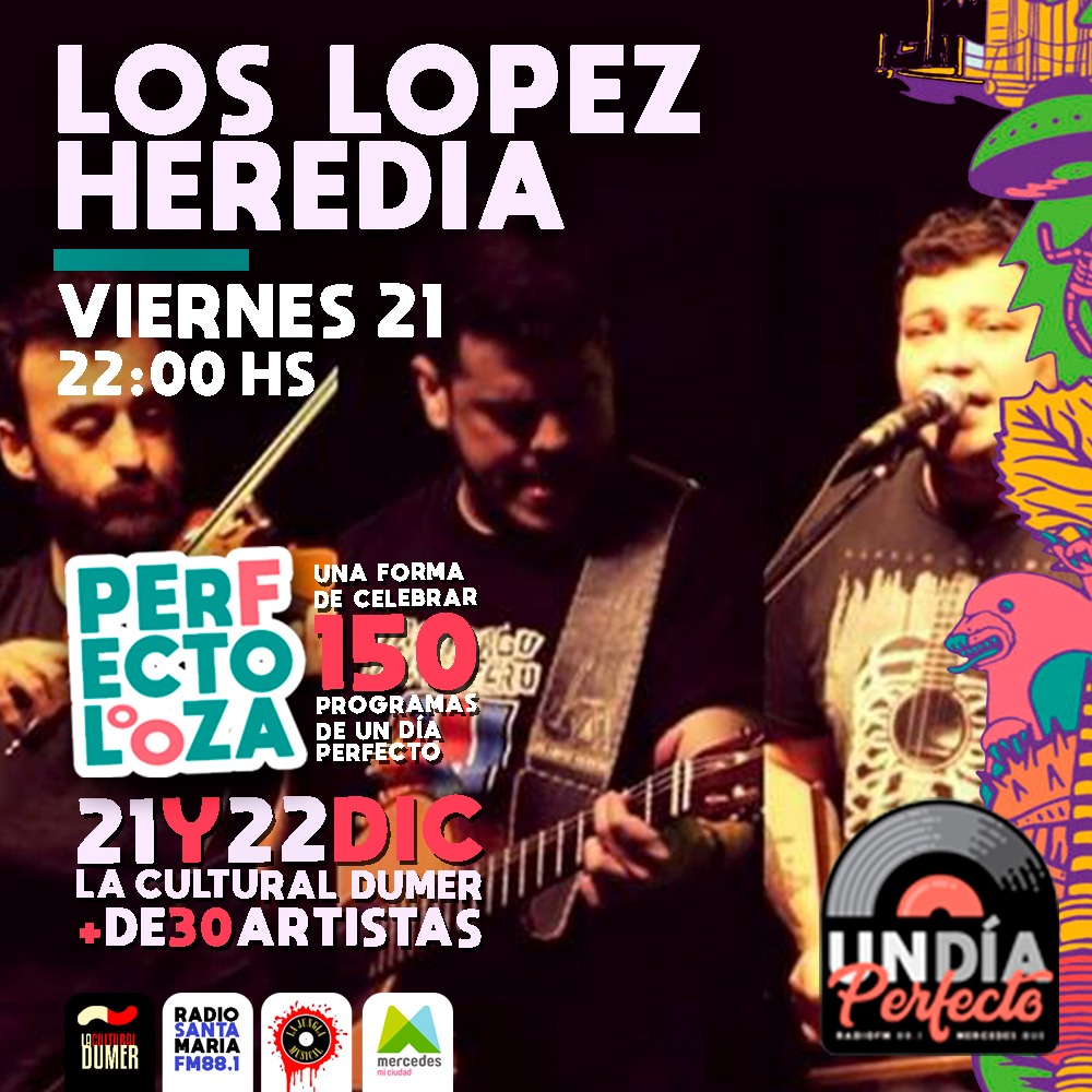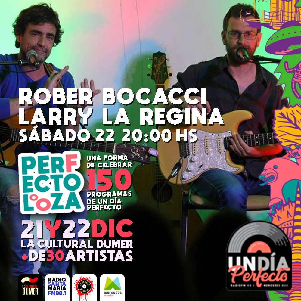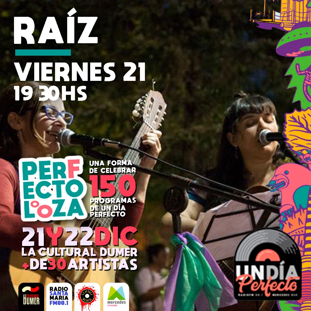 «Un Día Perfecto», programa de radio que se emite los jueves de 18 a 20, siempre en vivo por FM Santa María, celebrará junto a una importante cantidad de artistas este fin de semana sus primeras 150 emisiones. Se ha denominado «Perfectolooza» y se hará en La Cultural Dumer el viernes 21 y el sábado 22 de diciembre.