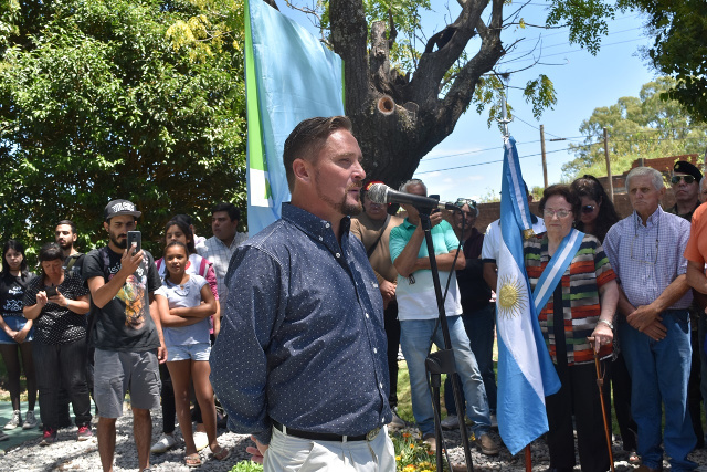A su turno, Damián “Vasco” Lacoste, referente de Altamira y su Sociedad de Fomento, señaló la importancia de “celebrar un aniversario reconociendo y homenajeando a un héroe de Malvinas y agradeció al intendente Ustarroz por el apoyo de la gestión a la comunidad.
