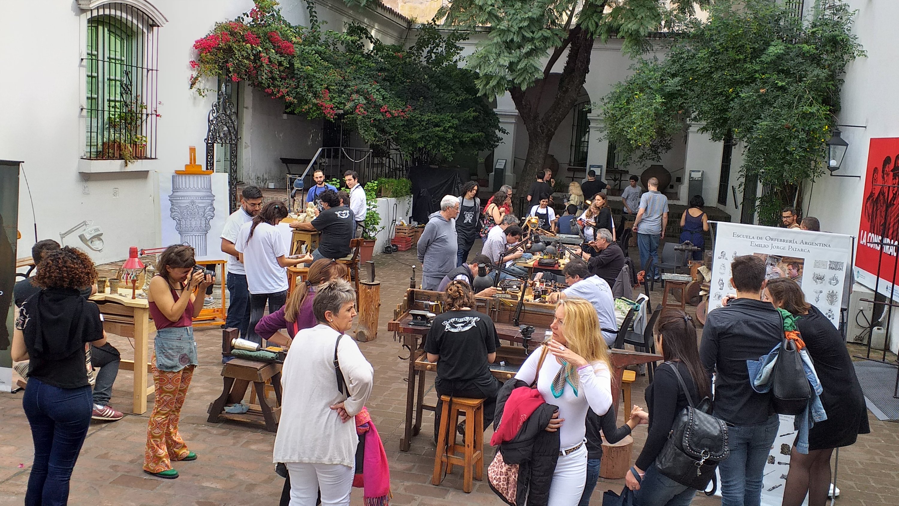 En una buenísima idea y además muy bien montada con las herramientas y a modo de taller abierto, en el patio del histórico Cabildo de la Ciudad de Buenos Aires más de 30 alumnos de la escuela de Patarca deslumbran a turistas que se llegan al Museo esta tarde de sábado.