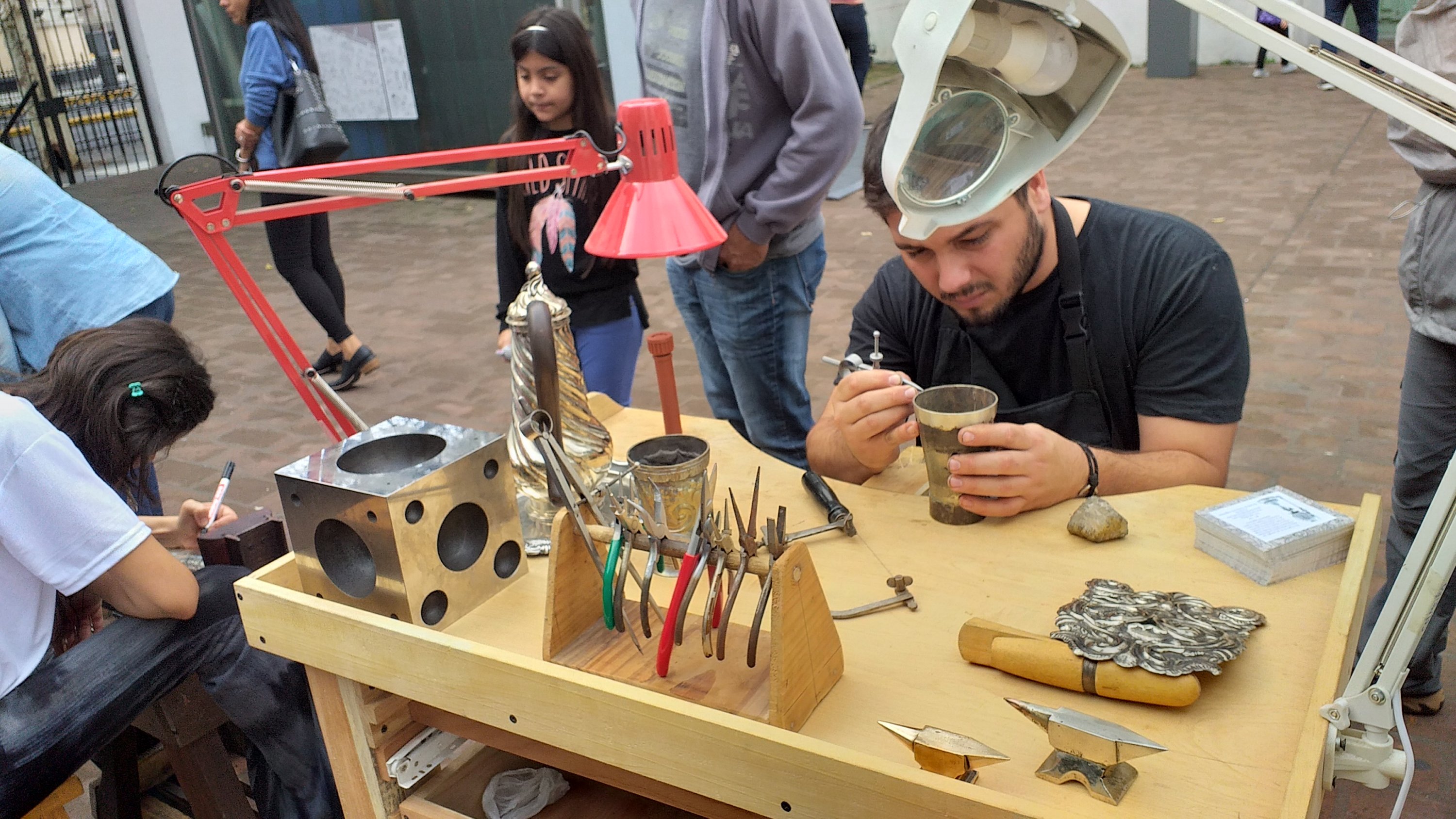 Tres mercedinos son parte este sábado por la tarde de un taller de platería en vivo, con demostración a cargo de Emilio Patarca y estudiantes de la Escuela de Orfebrería Argentina. Se trata de Lisandro Pauli, Javier Colmeiro y Manuel Badano.
