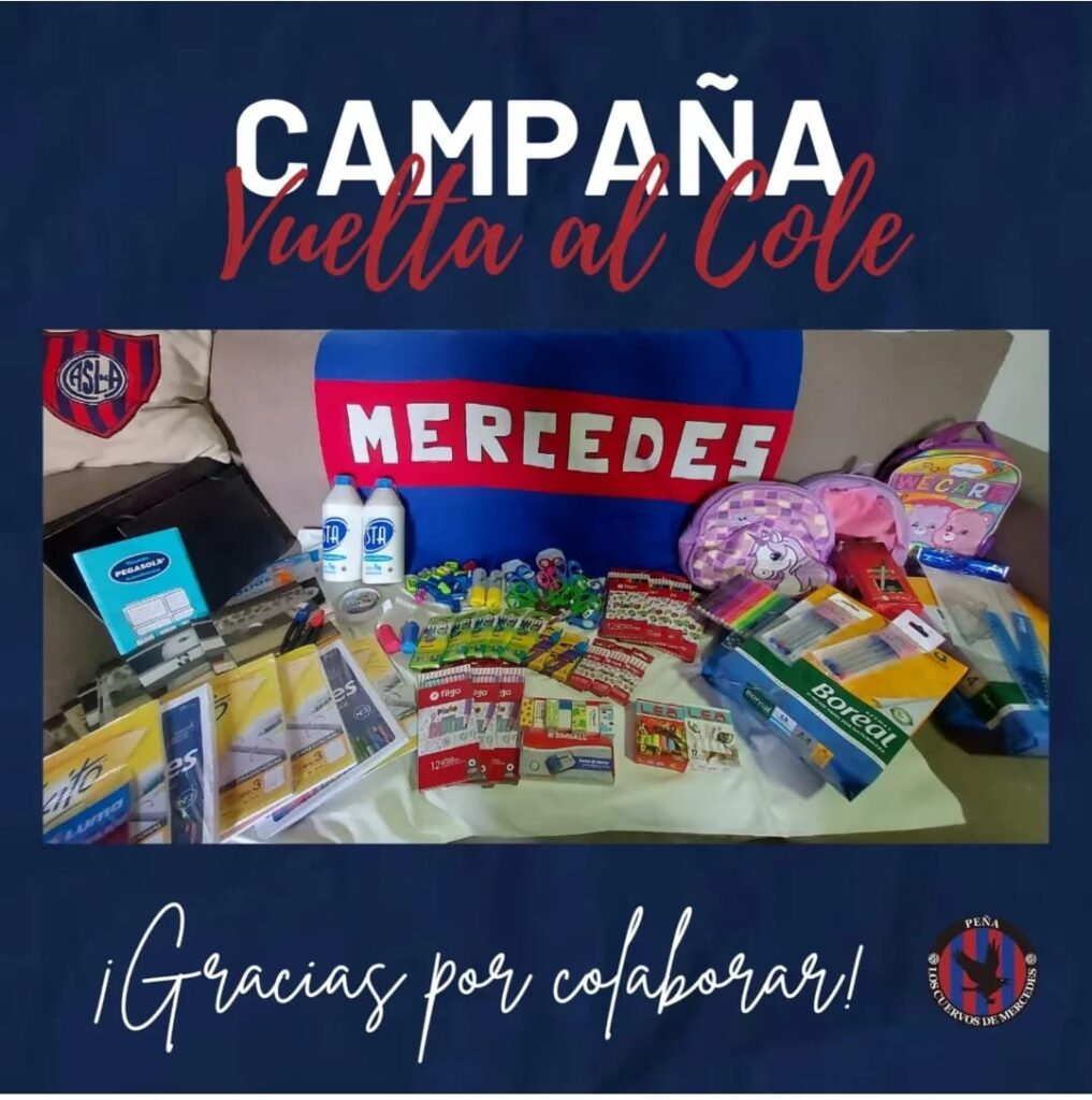 La Peña de San Lorenzo en Mercedes llevó adelante una nueva acción solidaria en el marco de la Campaña de Útiles Escolares impulsada por el Área de Acción Social del Departamento de Peñas del Club Atlético San Lorenzo de Almagro.