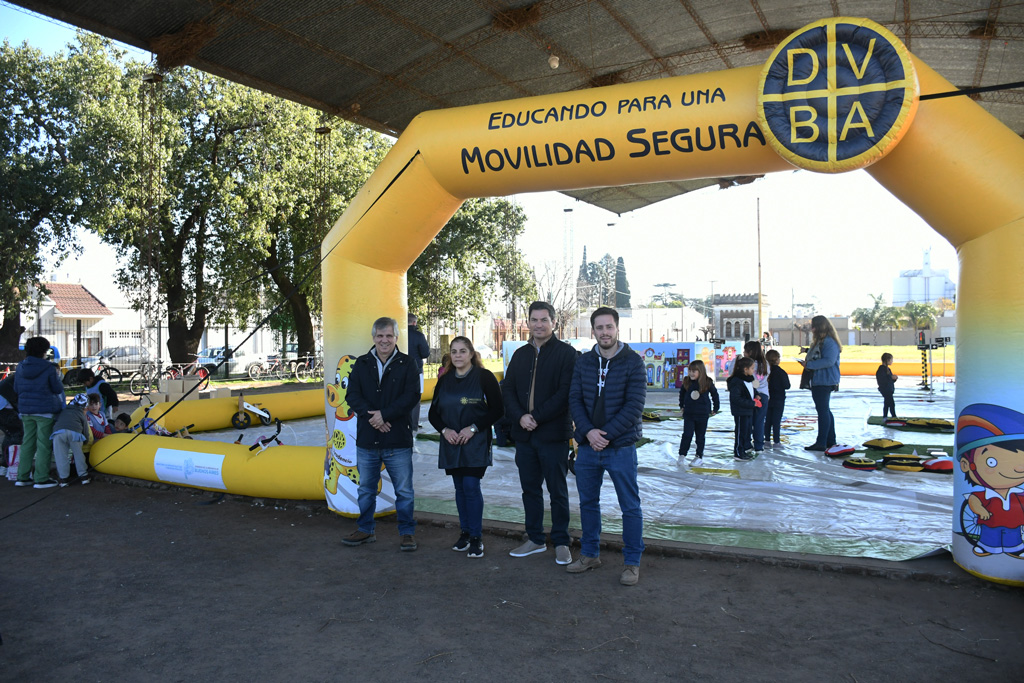 El evento incluyó la instalación de un parque temático que permite aprender sobre movilidad segura mediante juegos y actividades recreativas. También estuvieron presentes Gisela Gramático, representante del Centro de Educación Vial provincial; el secretario de Seguridad, Arturo Pertosa; y el director de Tránsito, Matías Maleichuk.