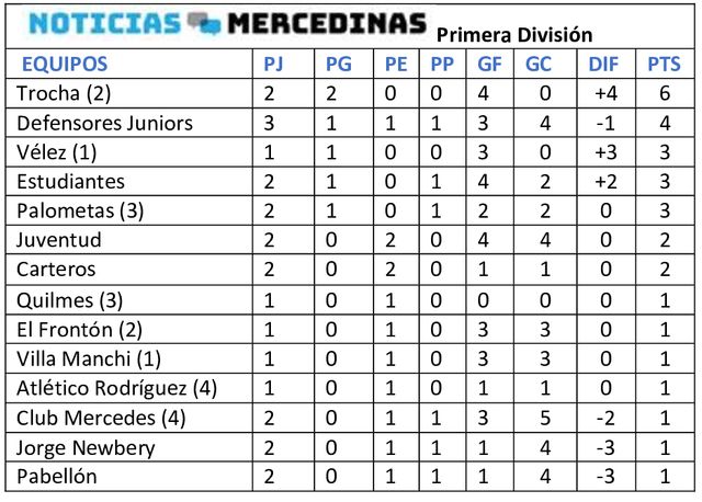 Durante la noche del viernes 12 de septiembre en cancha de la Liga Mercedina el torneo de Primera comenzó con la disputa de la cuarta fecha. En el primer juego Palometas se impuso a Defensores por 2-0 y con ello cayó el puntero, reponiéndose el “Granate” que había comenzado perdiendo ene l certamen.