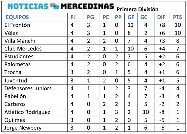 Durante la tarde noche del miércoles 1 de octubre se le dio continuidad al certamen de la Liga Mercedina de Fútbol, iniciándose con Segunda para darle luego lugar a la Primera, con la tercera fecha del Clausura. En cancha de la Liga El Frontón fue más que Estudiantes a la hora de la definición y con ello se llevó un 3-0 sobre Defensores, resultado que le permite a los de San Andrés de Giles liderar junto a Vélez. Como dato relevante en el año el equipo de Pérez Bianchi – Morada se encuentra invicto.