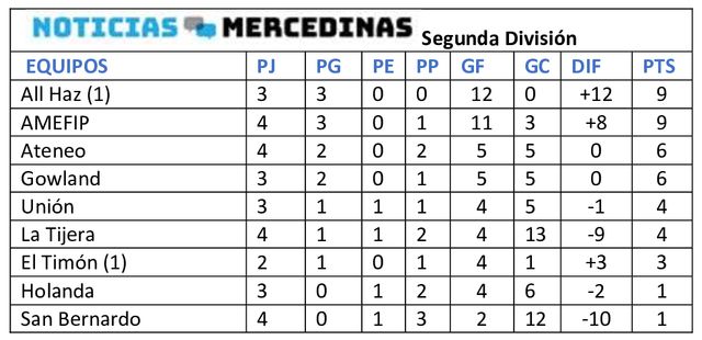 Ya en el Víctor Cestari, San Bernardo comenzó al frente para sufrir luego la embestida de AMEFIP, conjunto que terminó goleando en la noche del jueves. De esta manera la Segunda tiene dos punteros, All Haz y AMEFIP, destacándose el invicto y arco propio en cero para los de Diego Baglione. En la tercera fecha el libre resultó ser El Timón.