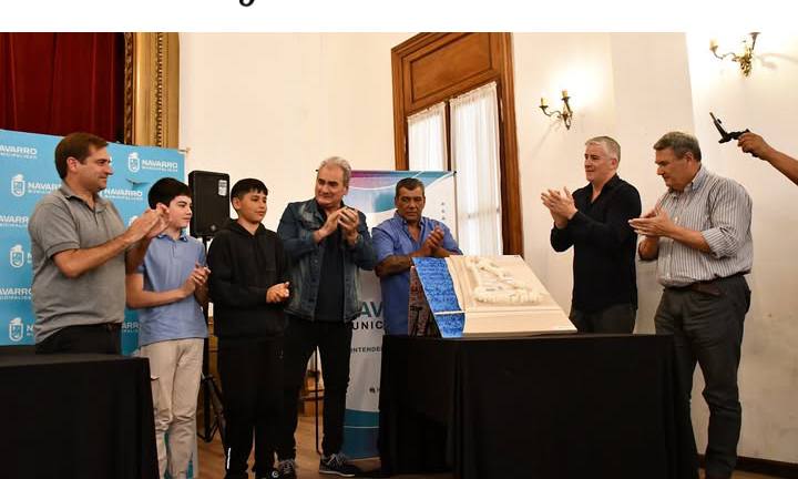 Durante el acto, el Intendente también felicitó a las jóvenes de Envión Navarro que participaron activamente en la construcción de la maqueta del proyecto, simbolizando la participación comunitaria en el desarrollo de la ciudad.