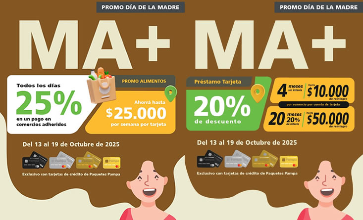 La campaña, denominada «Promo Día de la Madre MA+», incluye descuentos de hasta el 25% con reintegros de hasta $50.000 y financiación en cuotas sin interés en comercios adheridos.