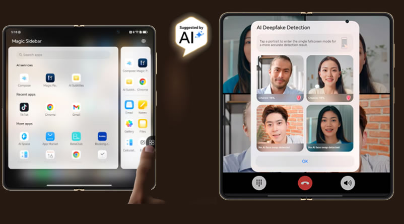 Construido con materiales robustos, el HONOR Magic V5 está diseñado para soportar el desgaste diario. La función destacada «detección de objetos extraños en la pantalla interna por IA» protege la pantalla interna de posibles daños. Esta capa de protección inteligente garantiza que el mecanismo plegable funcione sin problemas, manteniendo la integridad estética y funcional del dispositivo.
