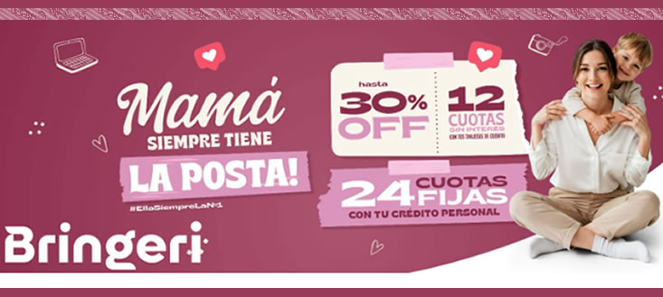 Bringeri Hogar y Bringeri Max lanzaron una importante campaña de promociones por el Día de la Madre, ofreciendo descuentos de hasta el 30% y amplias opciones de financiación, incluyendo 12 cuotas sin interés con tarjeta y 24 cuotas fijas a través de sus créditos personales.