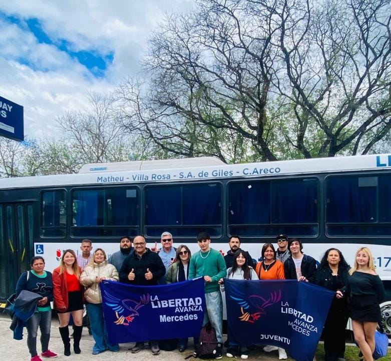 El coordinador local de Mercedes también señaló la presencia de dirigentes de su distrito, incluyendo a él mismo, el concejal Marcos Vergara y la consejera escolar Paula Córdoba, junto con una nutrida presencia de militancia.