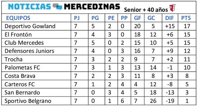 Integramente el miércoles 22 se jugó la séptima fecha del Fútbol Senior + 40 años, certamen de la Liga Mercedina que atraviesa el cierre de la fase regular en busca de los clasificados.