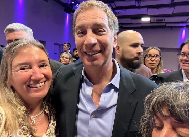 La concejal estuvo festejando el amplio triunfo de LLA en la provincia junto al principal candidato del espacio, Diego Santilli, de quien destacó su «excelente» liderazgo y empatía.