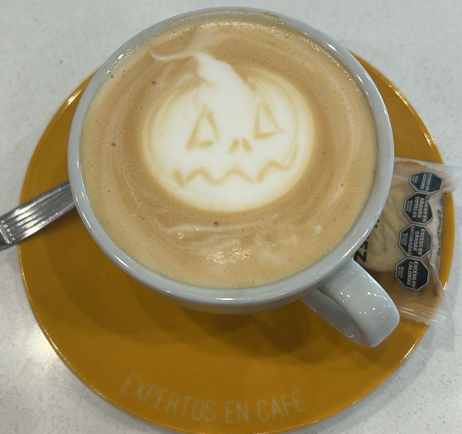 Además de la decoración tradicional, los baristas están aplicando la creatividad a sus bebidas, ofreciendo «artelate» con motivos alusivos, como calaveras y calabazas de Halloween, decoradas con grageas en los cafés con crema.