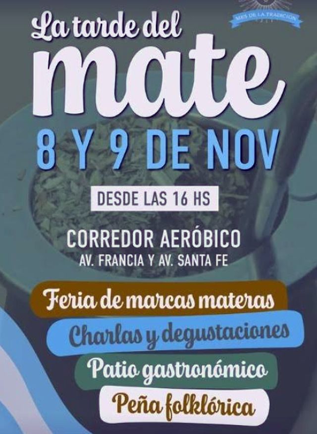 Este sábado 8 y domingo 9 de noviembre, en el Corredor Aeróbico de Bella Vista, en San Miguel (en Av. Francia y Av. Santa Fe), se llevará a cabo “La tarde del mate”, un encuentro para todos los amantes del mate, desde las 16 hs., con entrada libre y gratuita.