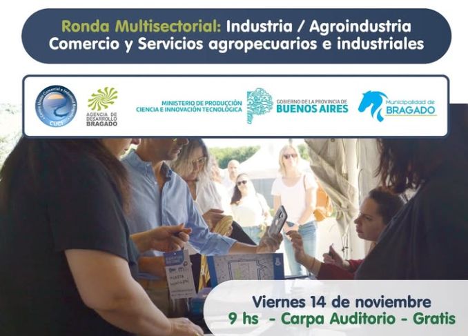 En el marco de la Expo Bragado 2025, el Ministerio de Producción, Ciencia e Innovación Tecnológica de la Provincia de Buenos Aires y el Municipio de Bragado invitan a participar de la Ronda de Negocios Multisectorial, que se realizará el viernes 14 de noviembre a las 9:30 hs en el Predio Pista de Ciclismo (Acceso J.D. Perón).