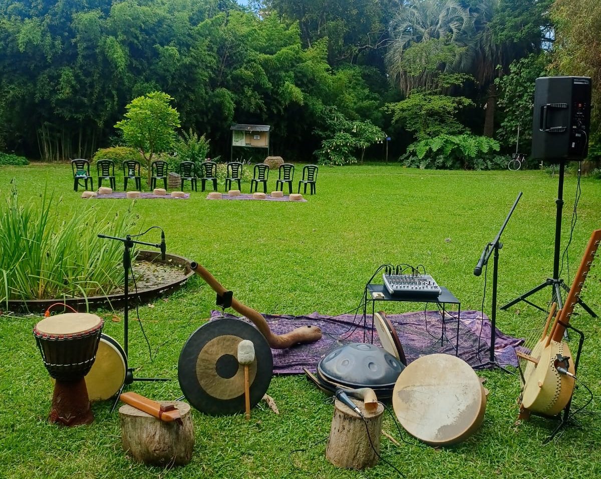 El espacio invita a una experiencia inmersiva que combina instrumentos ancestrales, música orgánica y movimiento, buscando una conexión profunda entre cuerpo y naturaleza.