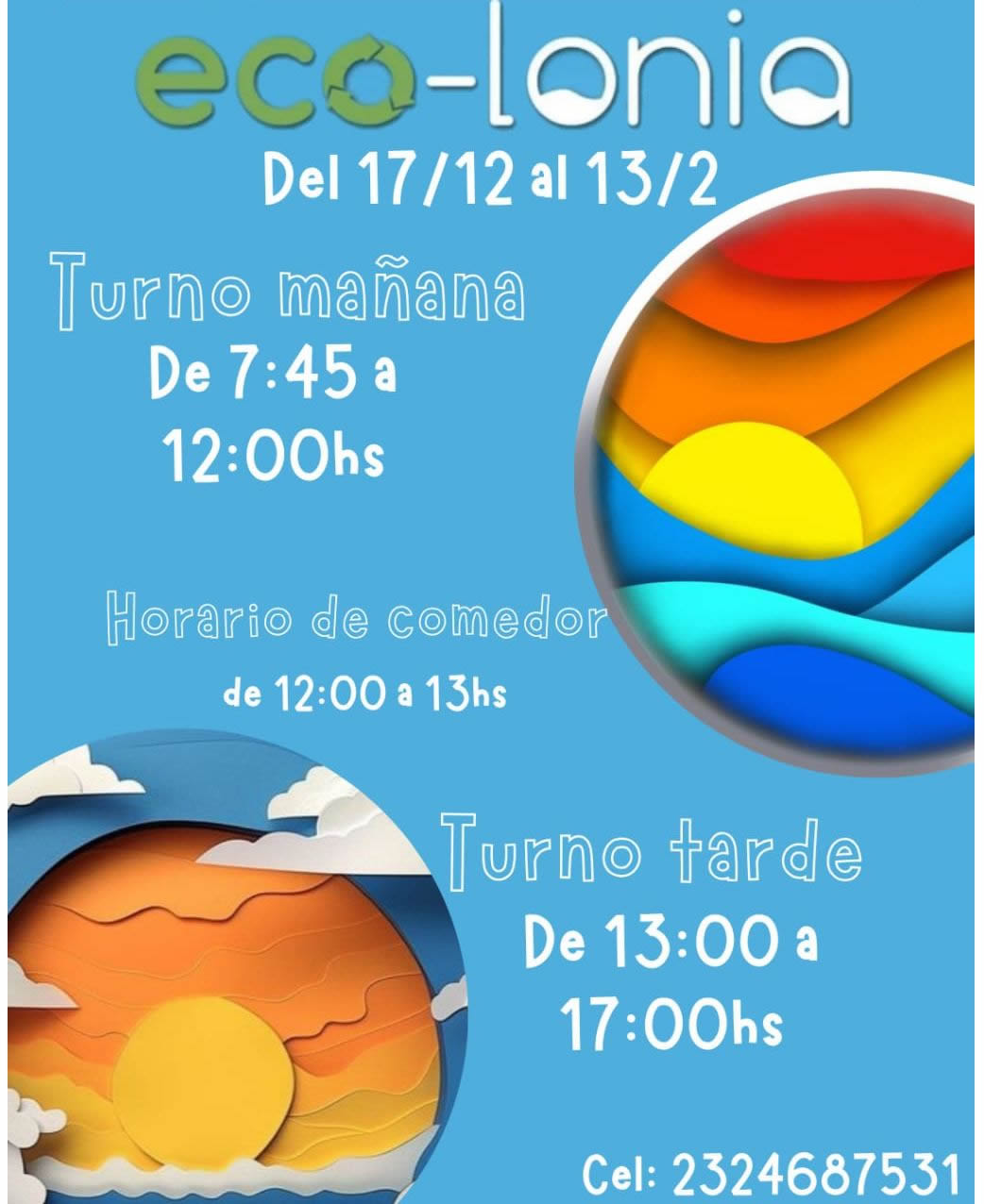 Importante: La cuota de la colonia no incluye la comida. Se aclaró que los padres pueden enviar la vianda a sus hijos, aunque se ofrecerá un servicio de viandas aparte para quienes deseen contratarlo.