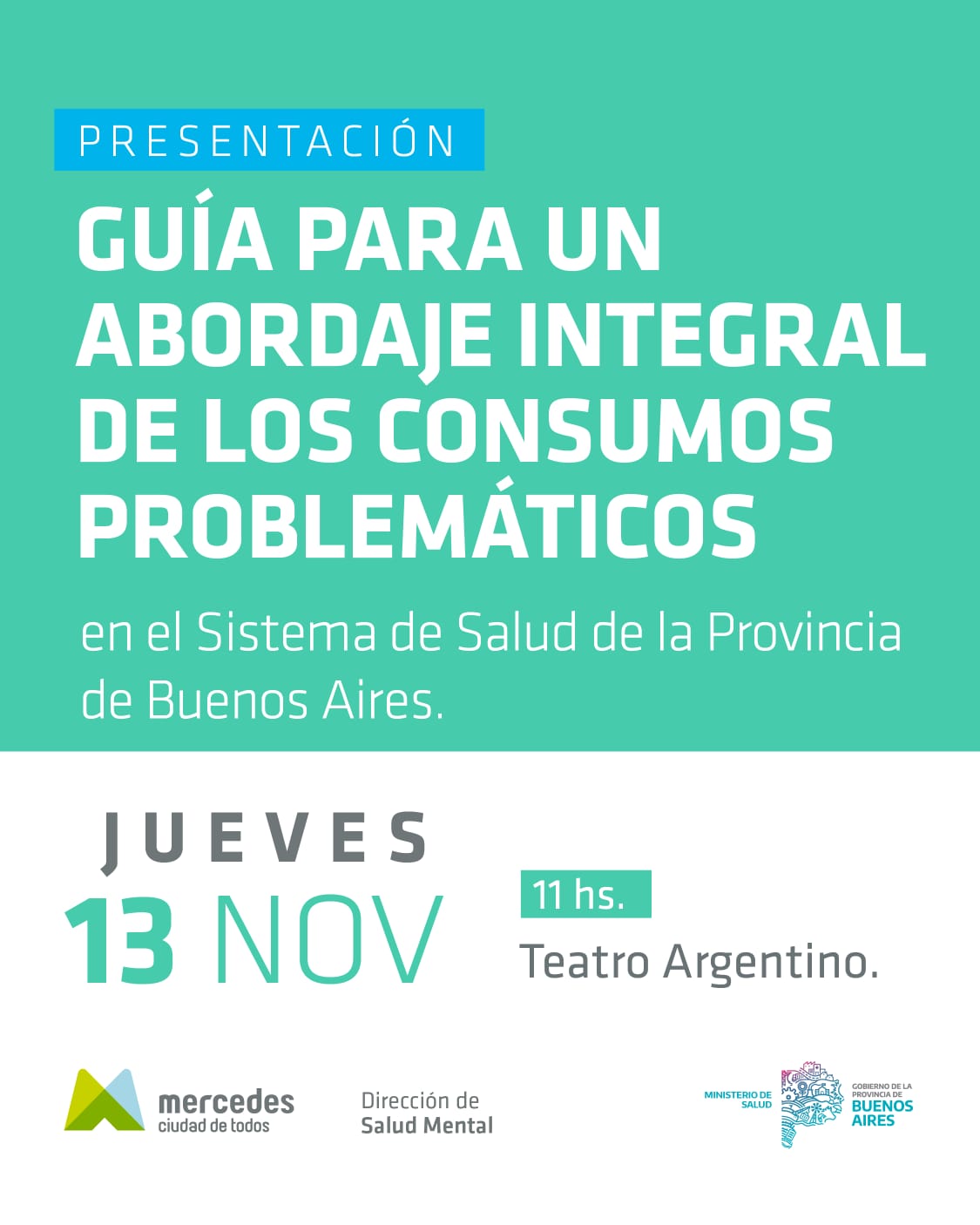 ​La presentación se llevará a cabo a las 11 horas de este jueves 13 de noviembre en el Teatro Argentino de Mercedes. Esta guía establece un marco de acción unificado y progresivo para que los equipos de salud puedan enfrentar de manera más efectiva y humana las problemáticas de consumo que afectan a la población bonaerense.