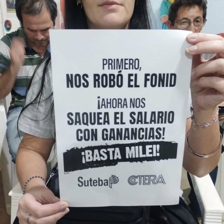 SUTEBA Mercedes destacó que el regreso del Impuesto a las Ganancias constituye un segundo golpe para el sector educativo, ya que se suma a la eliminación del Fondo Nacional de Incentivo Docente (FONID).