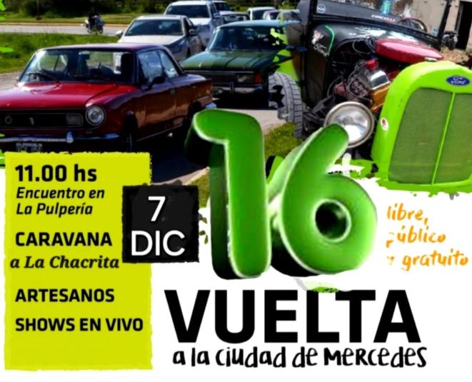 El domingo 7 de diciembre se llevará a cabo la 16° Vuelta Histórica a la Ciudad de Mercedes, un evento tradicional que convoca a propietarios y entusiastas de vehículos clásicos y antiguos, y que este año tendrá un cierre festivo y familiar.