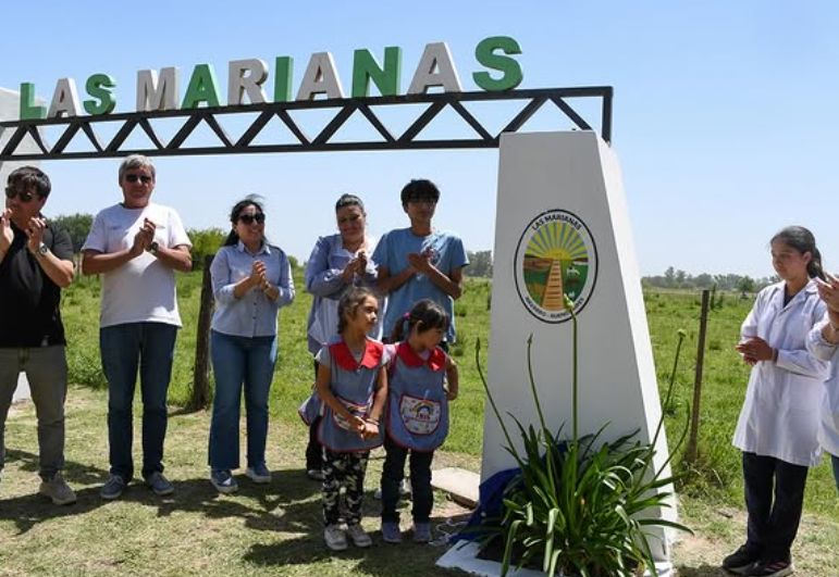 La entrada a Las Marianas, localidad perteneciente al partido de Navarro, luce ahora un nuevo emblema que refuerza el sentido de identidad de la comunidad: la instalación de su escudo oficial en la Ermita.