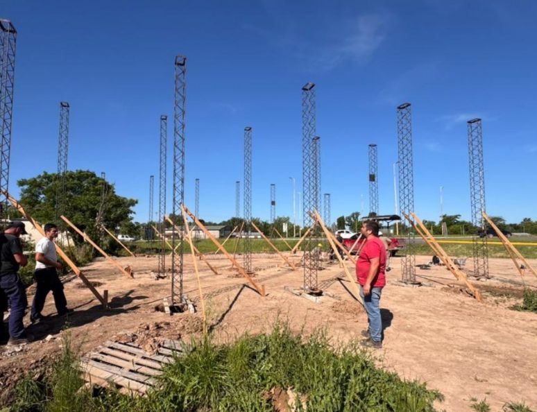 Actualmente, los trabajos se han centrado en la colocación de las columnas y el hormigonado de las bases. Los próximos pasos previstos incluyen la instalación de las cabreadas, perfiles y chapas, que darán forma final a la estructura.