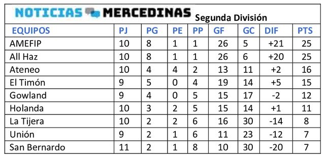 Durante la noche del martes 25 en cancha de la Liga Mercedina de Fútbol culminó la 12° fecha de Segunda División, saliendo del fondo de la tabla La Tijera que le ganó a Unión. Los dos están lejos de sus chances de ascenso y en este Clausura no terminan de encontrar el camino correcto.