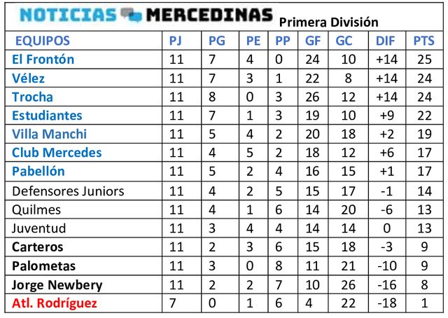 Hoy el “Azul” está como último clasificado y para confirmarlo pretende aprovechar la localía, no será sencillo al estar enfrente un Carteros al que le urge ganar. El programa de partidos se cerrará el lunes 8 en la Liga Mercedina, a las 17.30 Defensores vs. Vélez y 19.30 Trocha vs. Estudiantes. Palometas en esta fecha sumará tres puntos al tener como rival a Rodríguez que ya no sigue en el torneo.