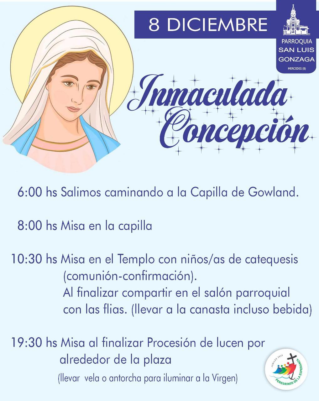 La Parroquia San Luis Gonzaga de Mercedes celebrará este lunes 8 de diciembre la festividad de la Inmaculada Concepción con un cronograma extendido que incluye misas y actividades comunitarias a lo largo de todo el día.