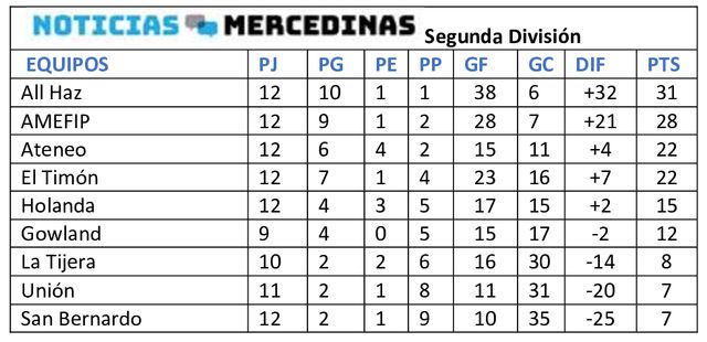 La Segunda de la Liga Mercedina tuvo un sábado de tres partidos, sumando de a tres AMEFIP por tener como rival a Gowland y El Timón ante La Tijera, quedando libre Holanda. En medio de ello se adelantó de la 17° fecha el juego de Holanda y Timón, que dejaron un empate en el atardecer en Héroes de Malvinas y 64. Punto que aporta poco, aunque los de Jáuregui siguen a la expectativa.