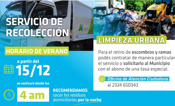 La Municipalidad de Mercedes dio a conocer el Horario de Verano para el Servicio de Recolección de residuos, el cual regirá a partir del 15 de diciembre.