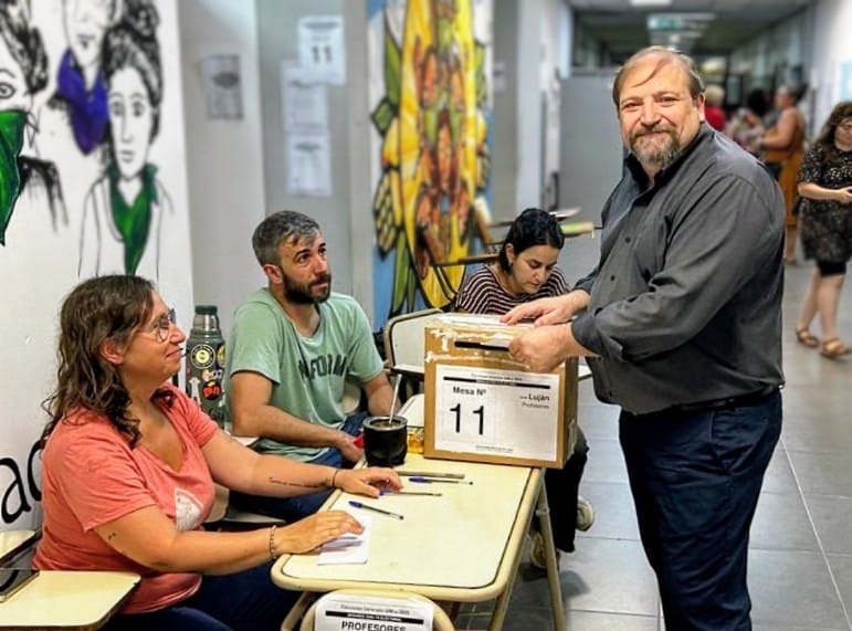 Al sufragar, Panessi hizo un llamado a la comunidad universitaria a ejercer su derecho «con orgullo por la UNLu».