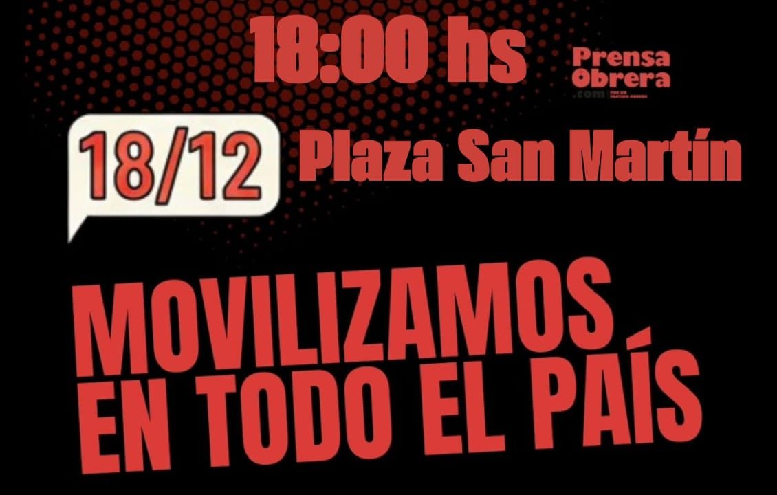 La movilización en la Plaza San Martín está prevista para este jueves 18 de diciembre a las 18:00 hs.