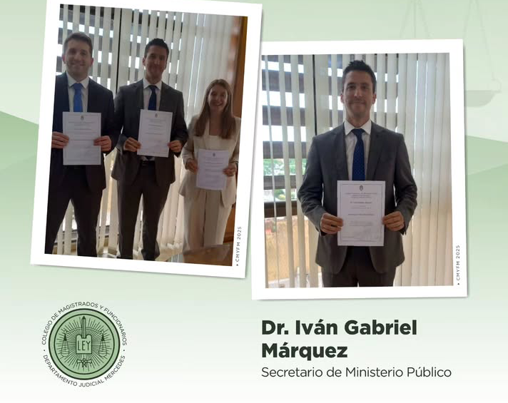 El Consejo Directivo del Colegio de Magistrados y Funcionarios del Departamento Judicial Mercedes anunció y celebró la asunción de tres nuevos profesionales que se incorporan a funciones esenciales dentro del Ministerio Público.