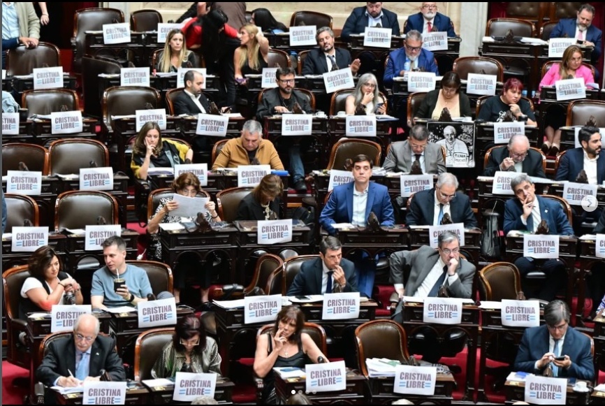 Hoy durante la sesión en la Cámara de Diputados de la Nación, se vivió un clima de fuerte tensión política cuando legisladores del bloque de Unión por la Patria, entre los que se destacan las representantes mercedinas Sabrina Selva y Vanesa Siley, exhibieron carteles con la consigna «Cristina Libre» en sus bancas.