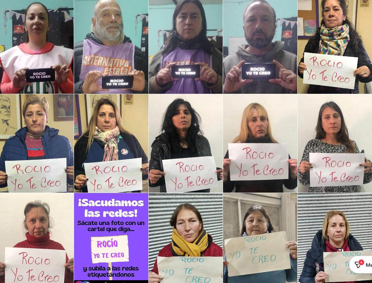 La inscripción hace referencia a Rocío, quien denunció haber sido abusada en 2018 por el entonces presidente del Honorable Concejo Deliberante (HCD) de Moreno. Dado que la causa se tramitó en el Departamento Judicial de Mercedes, la Asamblea de Mujeres Mercedinas (AMM) tomó un rol activo en el acompañamiento de la víctima durante las audiencias en el Palacio de Tribunales.