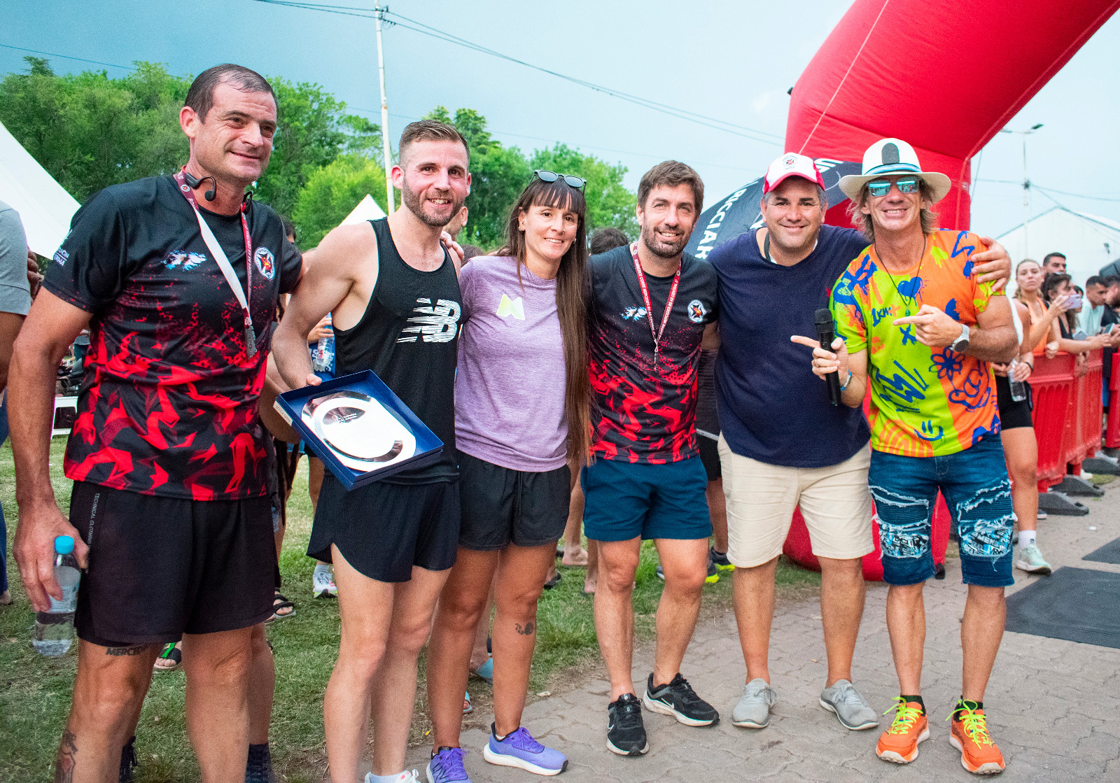 Rosa ganador rodeado de organizadores de la carrera.