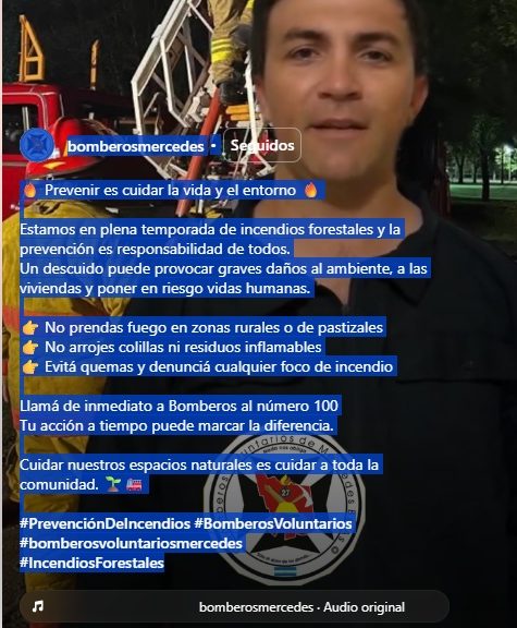 Bajo el lema «Prevenir es cuidar la vida y el entorno», el cuerpo de bomberos local inició una difusión activa en redes sociales debido a que la zona se encuentra en plena temporada alta de incendios forestales.