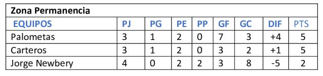 De esta manera Palometas aseguró su continuidad en el torneo mayor, lo mismo Carteros que había ganado el miércoles, para terminar descendiendo Jorge Newbery una fecha antes de cumplirse con el fixture. Jornada que ya no se disputará, con ello dio por concluida una de las instancias de la Liga Mercedina.