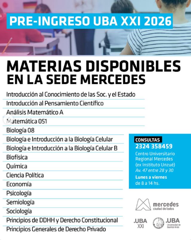 La Coordinación de Educación Superior de Mercedes anunció la apertura del calendario de inscripciones para el Pre-Ingreso UBA XXI correspondiente al ciclo 2026.