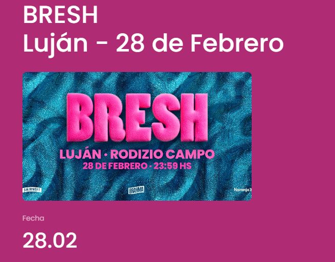 El calendario de eventos de la región suma un hito internacional. El próximo 28 de febrero a las 23:59 horas, la reconocida fiesta Bresh se presentará por primera vez en Luján, teniendo como escenario las exclusivas instalaciones de Rodizio Campo (Av. R. Alfonsín 2599). Las entradas ya se encuentran disponibles a través del sistema Mi Anticipada.