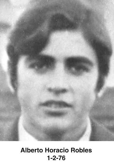 “En los primeros días de febrero de 1976 un amigo de Alberto avisa a su madre que el hijo estaba detenido en una comisaría de San Fernando. La señora se presenta en la comisaría y allí le dicen que Alberto Horacio no estaba ni había estado detenido allí. Horas después, y por intermedio de otros amigos de su hijo, detenidos junto con él, supo que el joven conscripto, a juzgar por los gritos oídos, podría haber sido asesinado dentro de la comisaría. Con esos testimonios la señora radicó una denuncia en el Juzgado Penal número 4, Secretaría 7, Causa 10616/7. Concurrió a declarar personal policial que admitió haber detenido al joven ROBLES durante un procedimiento «de rutina», pero el muchacho «se había escapado».