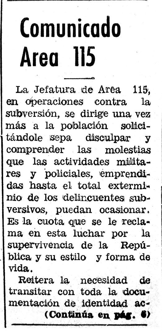 Cuando se conoció la noticia, el horror cundió en Mercedes. Por su parte, el Jefe del Regimiento 6 de Infantería “Gral. Viamonte”, el Tte. Cnel. Alberto Ramón Schollaert (47 años), dio un Comunicado a la prensa referido a las actividades militares y policiales que se estaban realizando en la zona: “La jefatura de Área 115, en operaciones contra la subversión, se dirige una vez más a la población solicitándole sepa disculpar y comprender las molestias que las actividades militares y policiales, emprendidas hasta el total exterminio de los delincuentes subversivos, puedan ocasionar. Es la cuota que se le reclama en esta lucha por la supervivencia de la República y su estilo y forma de vida”.