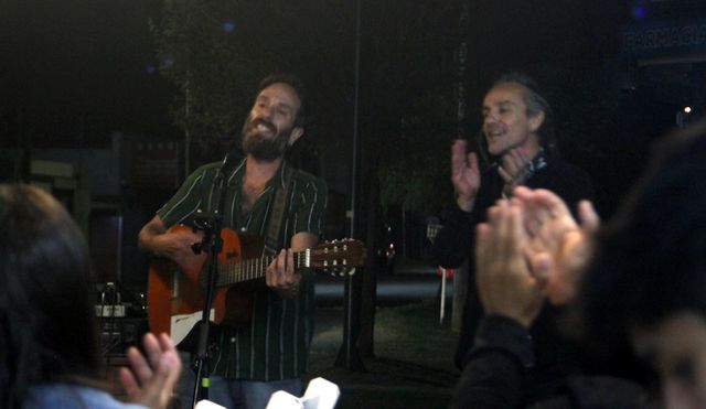 Uno de los puntos más altos de la noche llegó con la participación de Los Torero. El dúo, integrado por Mochi Ruiz en guitarra y voz, y Esteban Pity Ismael en cajón, palmas y coros, inyectó energía a la vereda con un set de rumba flamenca que elevó la temperatura del encuentro.
