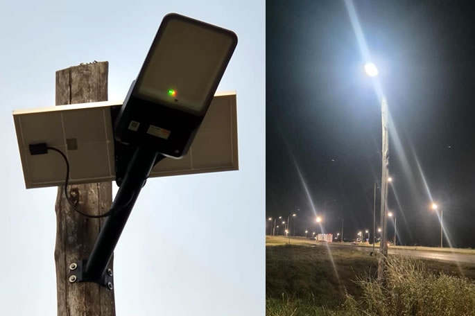 El dispositivo fue colocado en la curva de la calle 102, casi intersección con la Ruta 41, un sector identificado históricamente por los vecinos como «oscuro y peligroso» debido a la combinación de una traza cerrada y la falta de infraestructura lumínica previa.