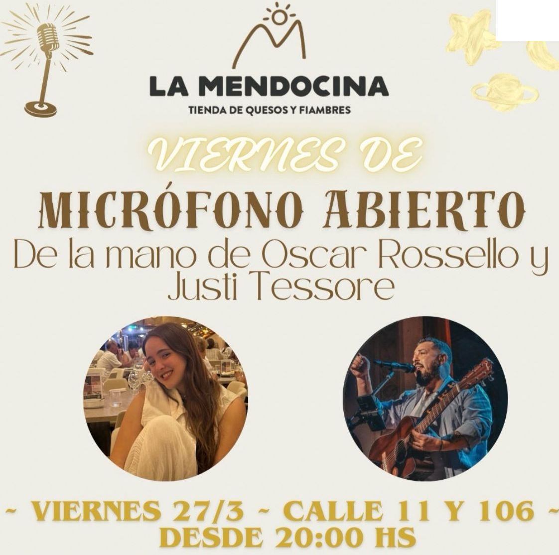 Bajo la anfitrionía del reconocido músico local Oscar Rossello, la noche contará con la participación especial de Justina Tessore, una artista cuya proyección crece con la fuerza de su juventud y desenfado.