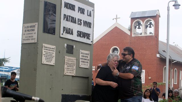 El momento de mayor emotividad se vivió durante el descubrimiento de una nueva placa alusiva en el monumento, tarea que llevó adelante la madre del veterano Walter Castro, seguida por un minuto de silencio en honor a quienes dieron la vida en las islas.