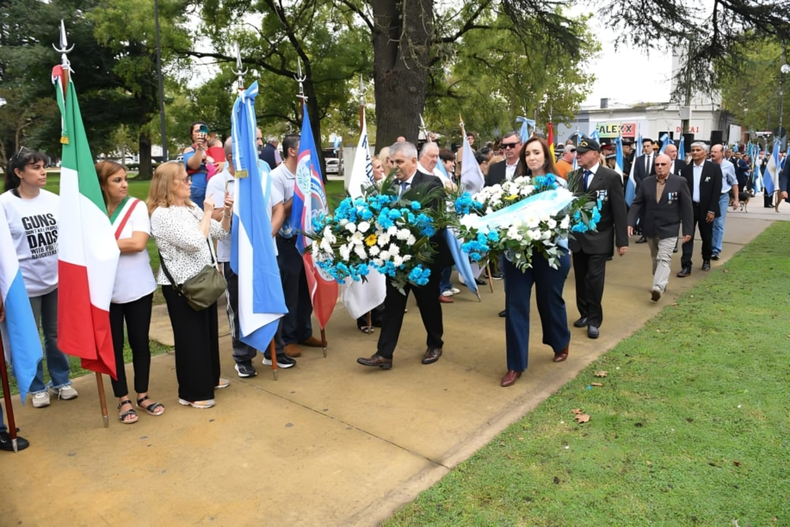 Durante la ceremonia oficial frente al monumento a los caídos, tanto Britos como Villarruel coincidieron en la necesidad de despojar a la fecha de tintes electorales.