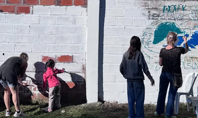 El eje central de la jornada fue la confección de un mural en homenaje a los héroes de Malvinas. A diferencia de un acto protocolar de descubrimiento, los integrantes de la agrupación trabajaron en la elaboración artística de la obra, plasmando en las paredes de la institución la imagen de los excombatientes como un símbolo permanente de soberanía.