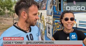 Historia mercedina cruza el mundo: familia maradoniana avanza con su bus...